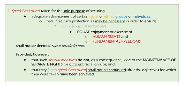 Now even if an argument could be mounted that the ethnic/racial groups of Australian's aboriginal and the humans that settled some of the Torres Strait island made as a consequence of rising oceal levels a few thousand years age, were exclusively ‘disadvantaged’ in relation to ‘litigation’ and thereby ‘discrimination’ in their favour was not only necessary but the only option to advance their circumstances, where is the application of the required provisions to ensure that the special measures WILL NOT “result in the maintenance of SEPERATE RIGHTS ” and WILL be automatically removed when the objective of the special measures has been achieved.
